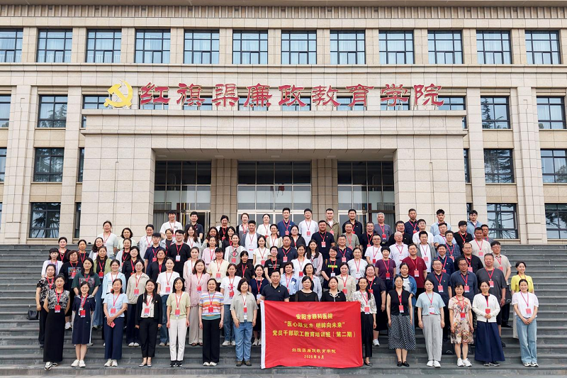 在党的103岁生日到来之际,为深入贯彻中央八项规定精神学习教育工作要求,全面提升党员干部职工政治素养与纪律意识,进一步营造风清气正的干事创业氛围,6月7日至8日和14日至15日,我院党委书记霍永军和院长屠永芳先后带领党员干部职工分两批来到红旗渠廉政学院开展“医心跟党走  明眸向未来”教育培训活动。