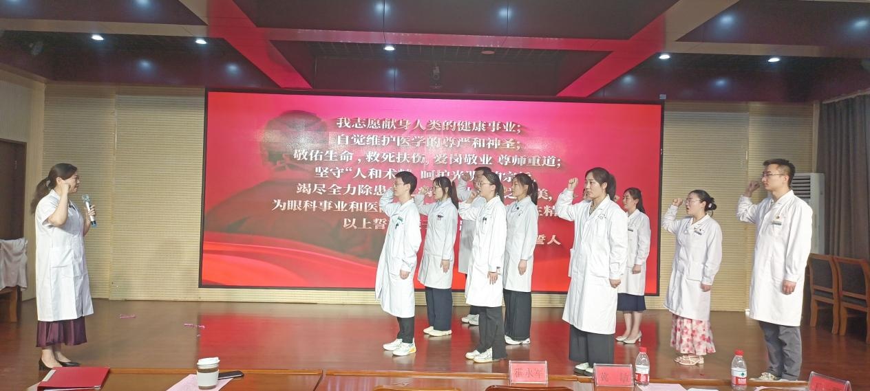 “我志愿献身人类健康事业,自觉维护医学的庄严与神圣……为眼科事业和医院的发展贡献自己的毕生精力……”新进医师代表们在屠永芳院长的带领下集体宣誓,意气风发的青年医务工作者怀揣着沉甸甸的期许与使命,让医疗事业在代代相传中绵延不绝。